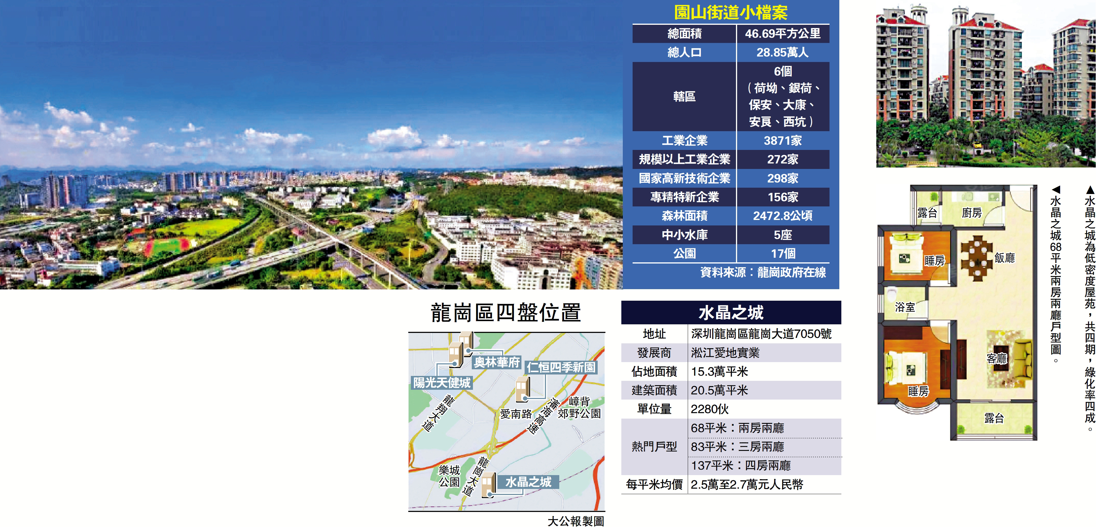 地鐵14號線和3號線途經園山街道,拉近與福田CBD時空距離,20多分鐘到羅湖口岸。鄰近地鐵站的水晶之城,兩房單位入場費188萬元(人民幣,下同)(約205萬港元),性價比吸引。\大公報記者 李昌鴻深圳報道