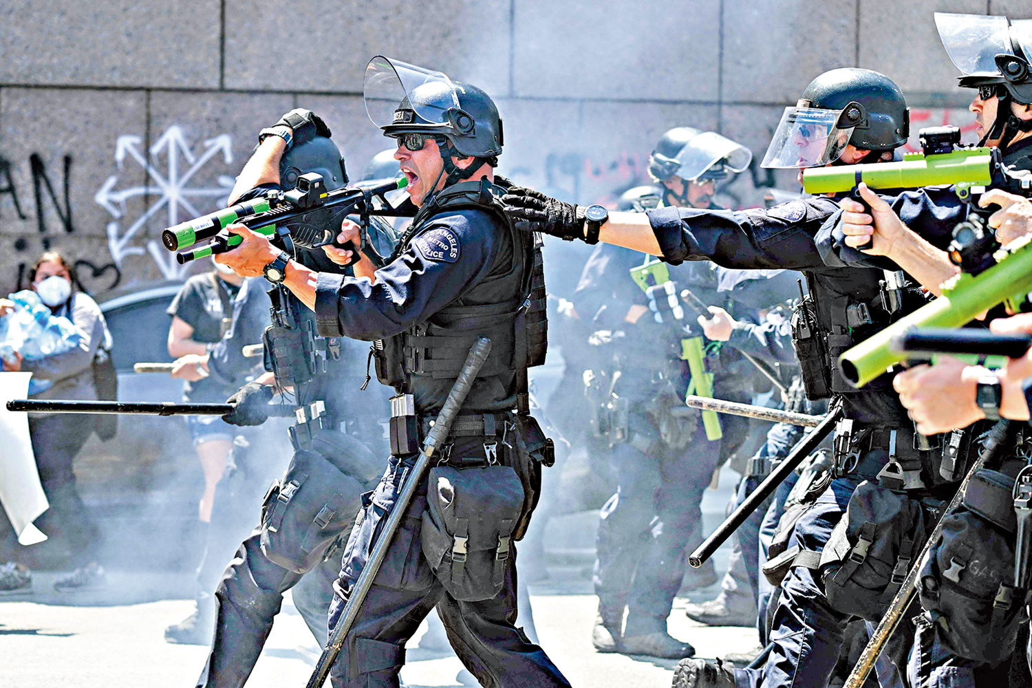 美國警察6日以來動用警棍、橡膠子彈、催淚彈、胡椒噴霧和閃光彈等多種武器對付示威者。洛杉磯警局表示,過去幾天當地因參加抗議活動而被捕人數顯著上升,截至10日被捕總人數已達378人。巴斯10日宣布,當晚8時至11日清晨6時在市中心部分區域實施宵禁,禁止除居民、記者和緊急服務人員以外的人進入。宵禁措施可能持續數日,覆蓋約1平方英里(約2.6平方公里)區域,包括洛杉磯唐人街。巴斯稱,9日晚抗議活動結束後,市中心出現多宗趁亂搶劫店舖和隨處塗鴉事件,促使當局實施宵禁。
