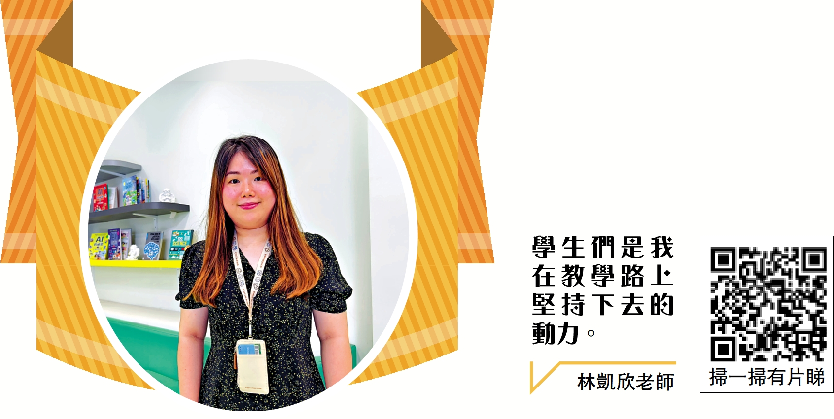 林老師說:「可能每日要處理很多學生或者家長的問題,有時候會令自己感到氣餒,但學生們也是我在教學路上堅持下去的動力。」她希望學生不要輕易放棄自己,每個人都有屬於自己的亮點,今日做不到不代表永遠做不到,儘管每個人可能因為能力或際遇的不同,需要經歷更多兜兜轉轉或時間才能達到自己的目標,相信今天撒下去的種子未必會立即發芽,但灌溉的養分和水分到了某個時機,終將會發芽。\大公報記者 古倬勳(文)、李宇俊(視頻,相片)