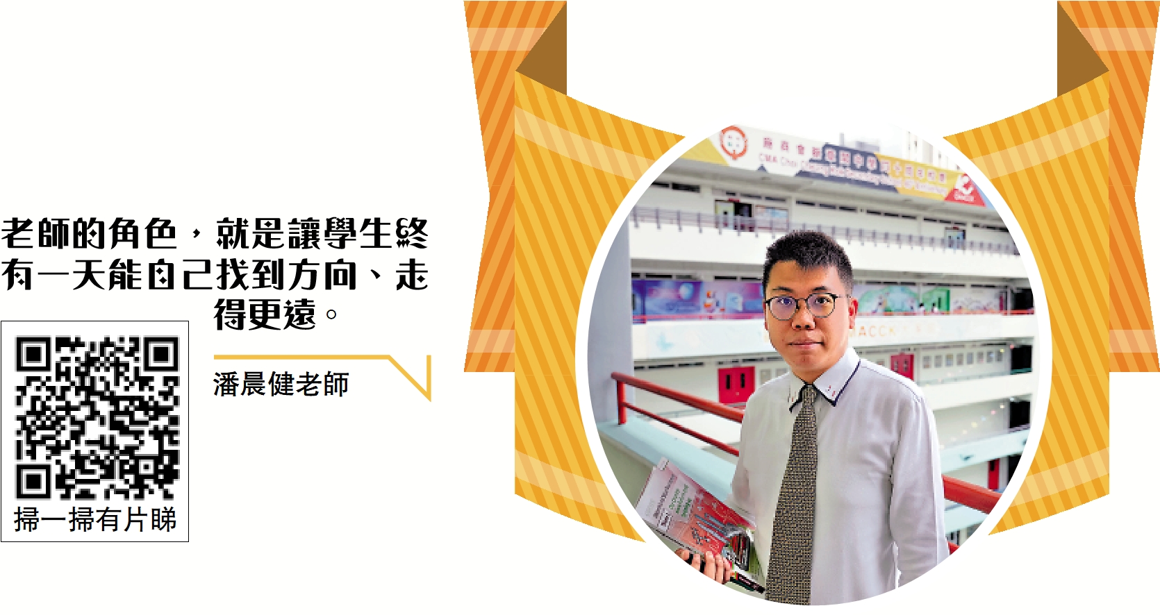 「起跑線不同不緊要,終點可以自己揀。」廠商會蔡章閣中學的潘晨健老師常將這句話掛在嘴邊。這句話曾經鼓勵了未考入心儀中學的他,如今成了他教育路上的座右銘,讓他特別關注那些容易被忽略的中游學生,以及受社會「刻板印象」影響的非華語學生。他深信,只要學生找到自己的優勢與興趣,每一段跌跌碰碰的過程,終會成為日後的養分。
