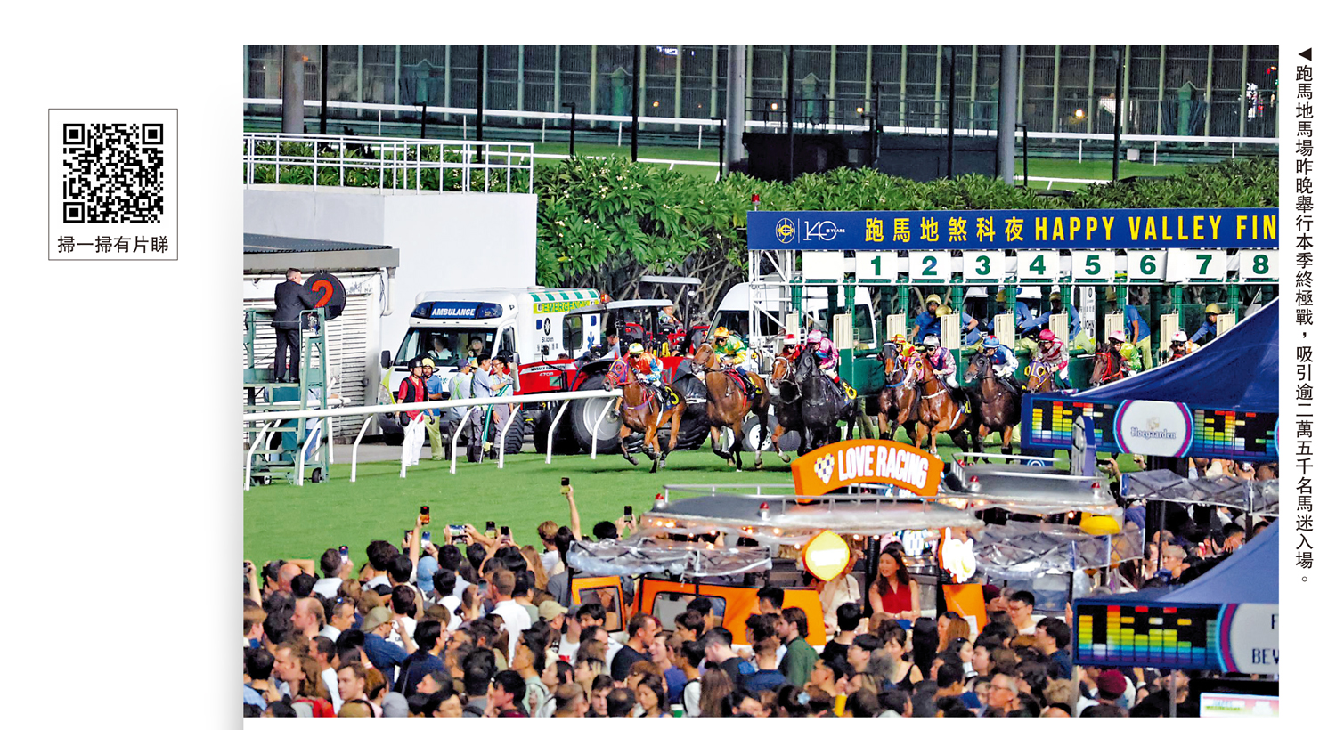 2024/2025年度馬季昨晚在跑馬地馬場煞科。全日舉行9場精彩刺激賽事之餘,馬場內更化身成為氣氛熾熱的嘉年華會,吸引25278名馬迷入場,共同感受本地賽馬的獨特魅力,全晚總投注額則是16.14億港元。本季「告東尼獎」最終由潘明輝以36場頭馬奪得。下季開鑼日定於9月7日在沙田馬場上演。\大公報記者 張銳、朱家立(文、圖)