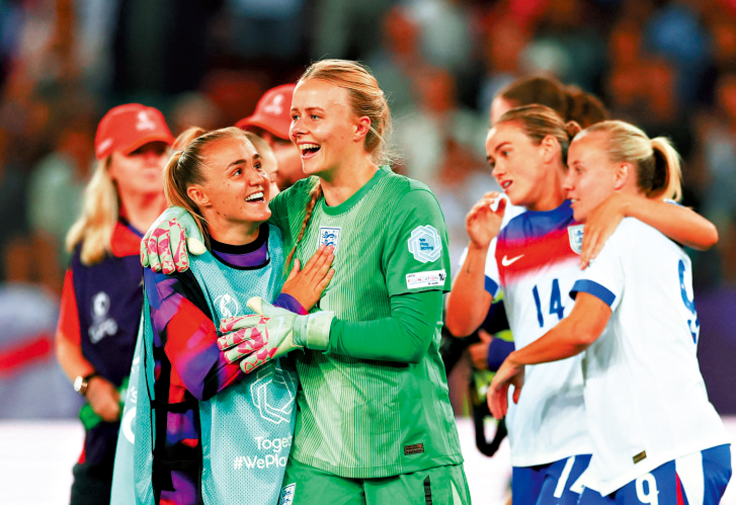 爭取衛冕女子歐國盃的英格蘭女足死裏逃生,昨晨8強面對瑞典,上半場連失兩球落後之下,於79和81分鐘接連憑老將右閘邦絲及年輕前鋒艾耶曼芝攻入而扳平2:2,加時仍未分高下最終互射12碼決勝,首5輪雙方各3人射失,「突然死亡」第2輪邦絲射入協助英軍晉級4強鬥意大利。