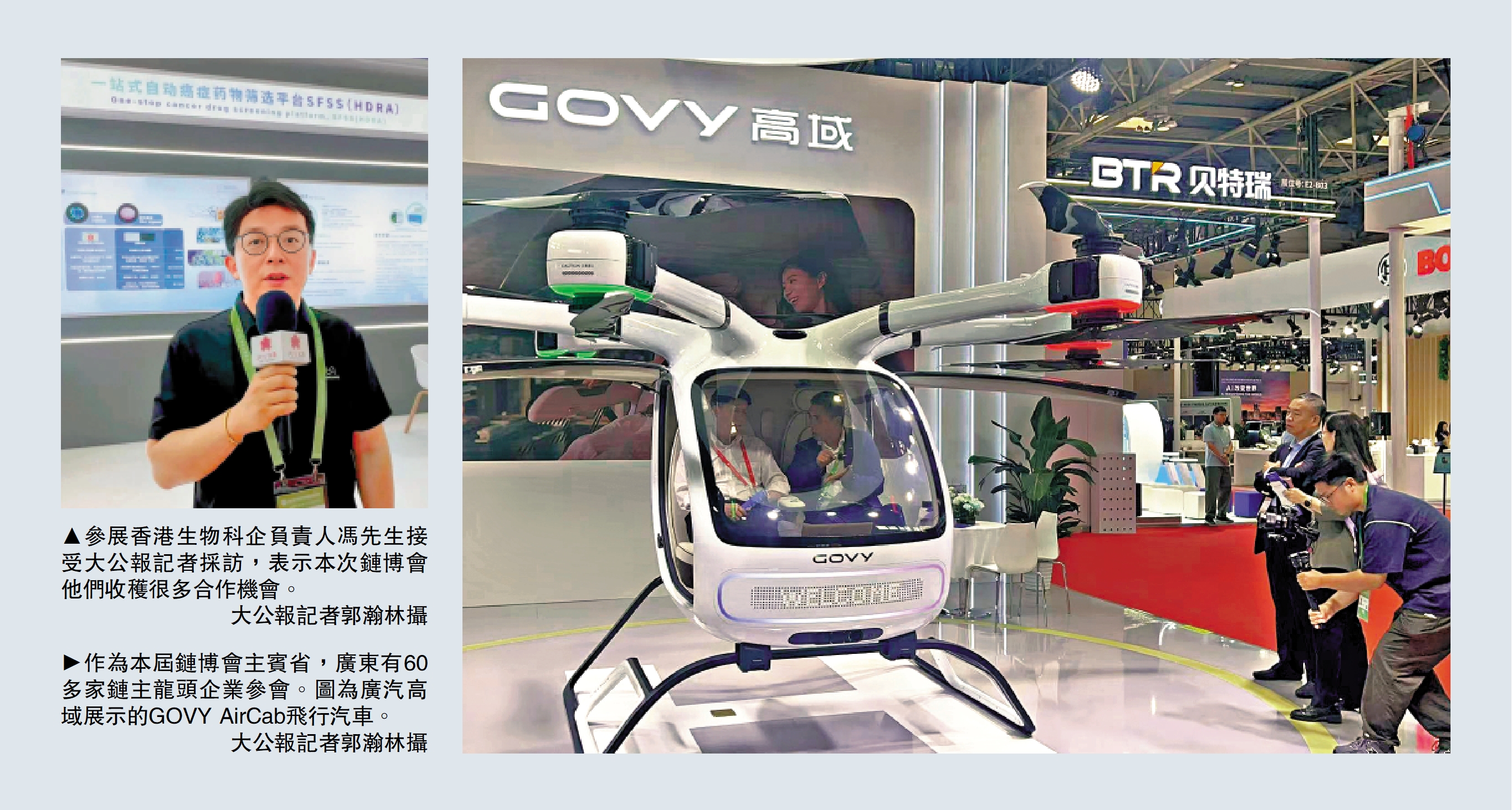 本次參展的一家香港生物科企負責人對大公報記者表示,鏈博會為年輕企業提供對外交流的極佳契機,僅開幕當天就有兩家國家級研究院表達合作意向,多家境外機構主動了解合作前景,收穫頗豐。\大公報記者 郭瀚林、任芳頡