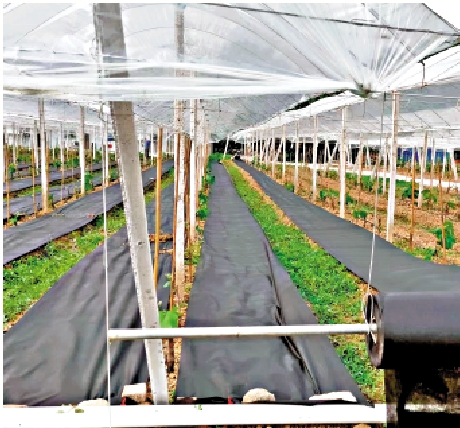 在供港蔬菜基地清理排水溝,準備水泵,應對暴雨及時排水,加固大棚;為作物鋪上防護罩。