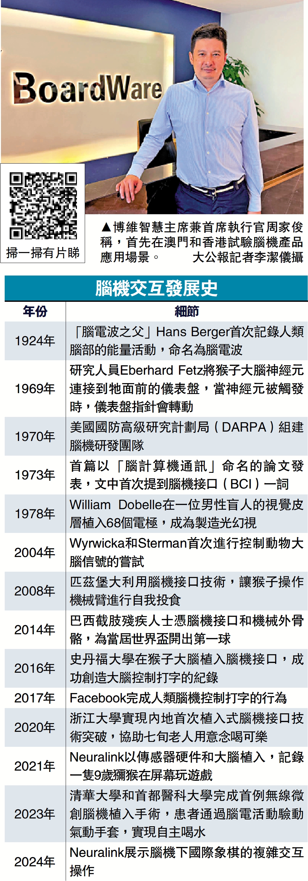 不過,周家俊直言,內地腦機交互設備市場競爭大,難有利潤空間,博維智慧會首先在澳門和香港試驗腦機產品應用場景,針對面向企業(2C)市場,待成熟後會更多走國際化路線,在海外布局營銷渠道,期望最快明年為公司帶來收入貢獻。\大公報記者 李潔儀