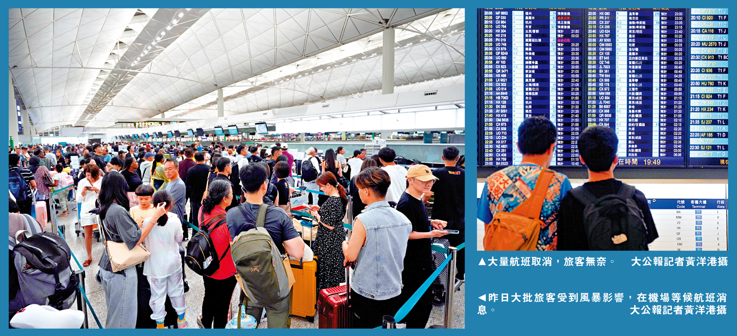 香港國際機場昨日全日有約500班航班受影響,機管局昨日下午陸續重新編排航班升降,航空公司通宵運作,預計今日傍晚可處理好延誤航班。\大公報記者 易曉彤