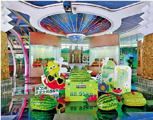 中國西瓜博物館的造型別具一格,主館恍如一顆巨型西瓜,兩側綠葉舒展,設計主題為「飛翔的西瓜」,象徵大興西瓜產業的蓬勃發展。北京大興素有「中國西瓜之鄉」美譽,二○○七年大興西瓜獲得國家地理標誌農產品保護,成為全國知名品牌。