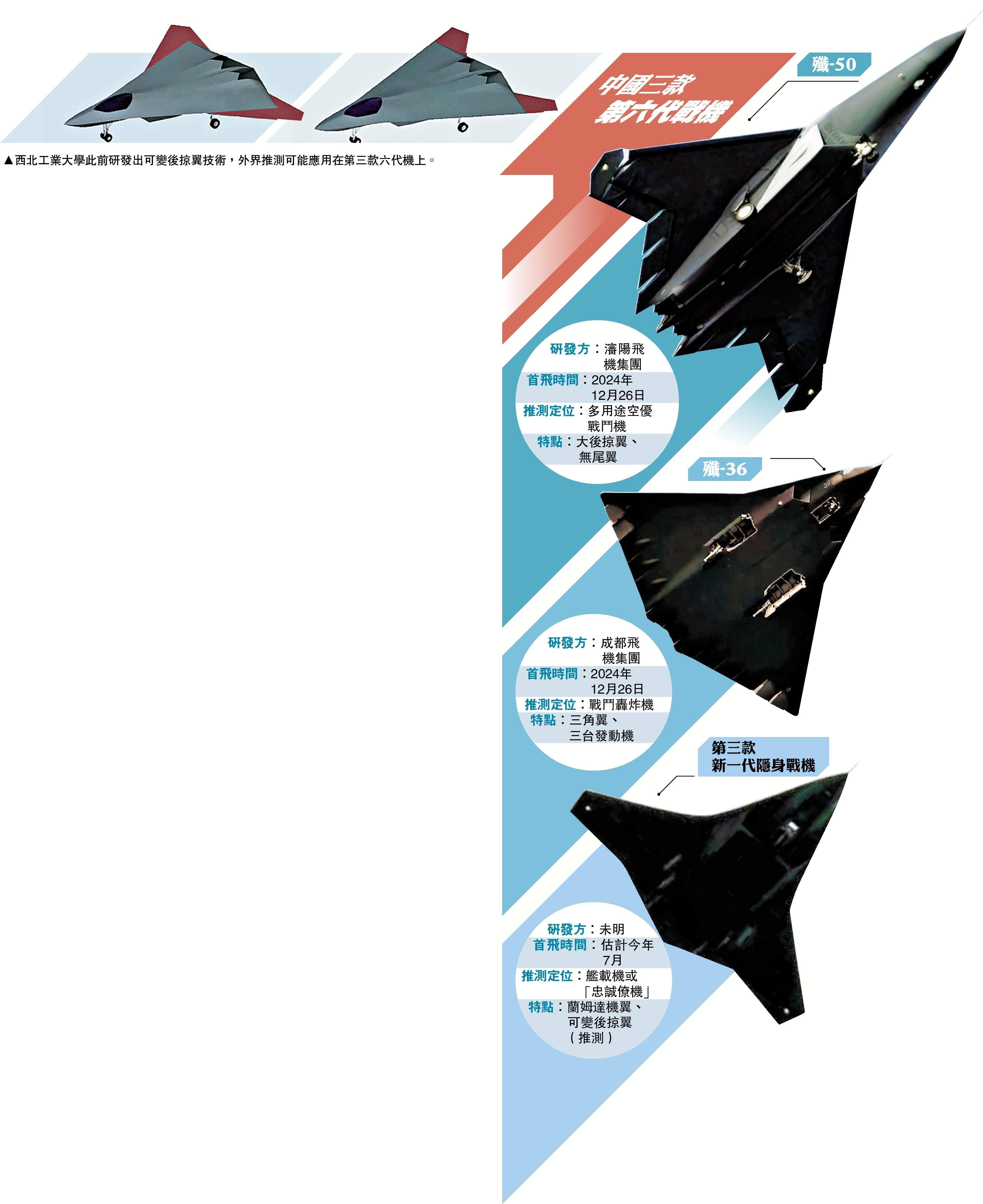 2024年12月26日,中國同日試飛了兩款第六代隱身戰鬥機,分別是成都飛機集團的殲-36和瀋陽飛機集團的殲-50。時隔半年多,第三款新型飛行器亮相。