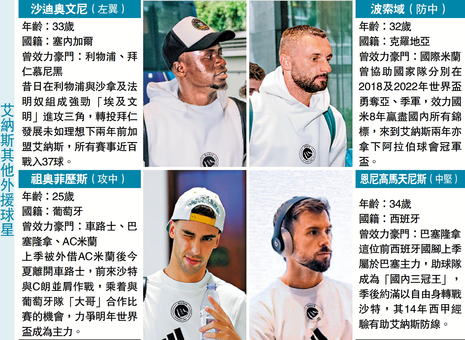 這位前西班牙國腳上季屬於巴塞主力,助球隊成為「國內三冠王」,季後約滿以自由身轉戰沙特,其14年西甲經驗有助艾納斯防線。