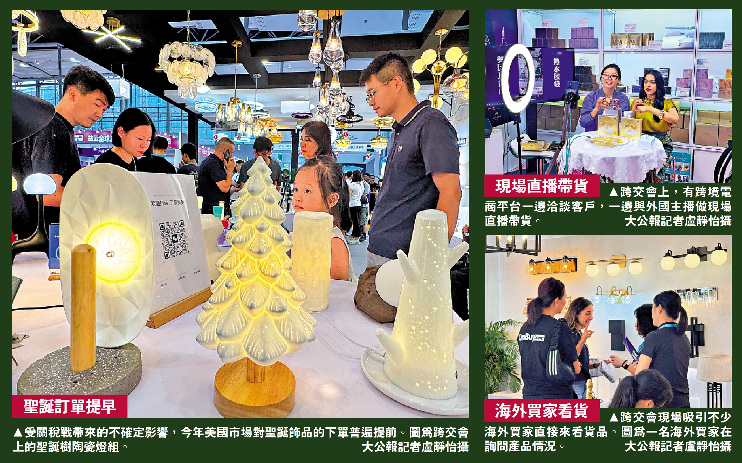 8月15日至17日,2025中國(廣東)─RCEP成員國跨境電商交流活動暨中國(廣州)跨境電商交易會(簡稱「跨交會」)在廣州舉行,現場人氣爆棚。《大公報》採訪多家廣東外貿企業發現,廣東生產的聖誕飾品正提前出口美國,不少訂單比往年「早2到3個月下單」,讓外貿「淡季變旺季」。\大公報記者 盧靜怡廣州報道