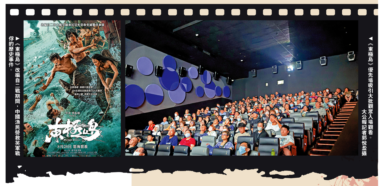 電影《東極島》將於8月28日正式在港上映,周日(17日)在影藝戲院舉行優先場放映,現場入座率近八成。影片細膩再現中國漁民在炮火與巨浪中冒死營救英國戰俘的歷史事件,展現戰火中的人性光輝。觀眾全程專注,既因片中黑色幽默的情節而哭笑不得,亦被演員真摯演繹而感動落淚。片尾播出一段短片,記錄倖存者及家屬回顧,讓歷史記憶得以延續。影片忠於史實,具備藝術與教育價值,引發觀眾對勇氣、責任與人性的思考。\大公報記者 郭悅盈