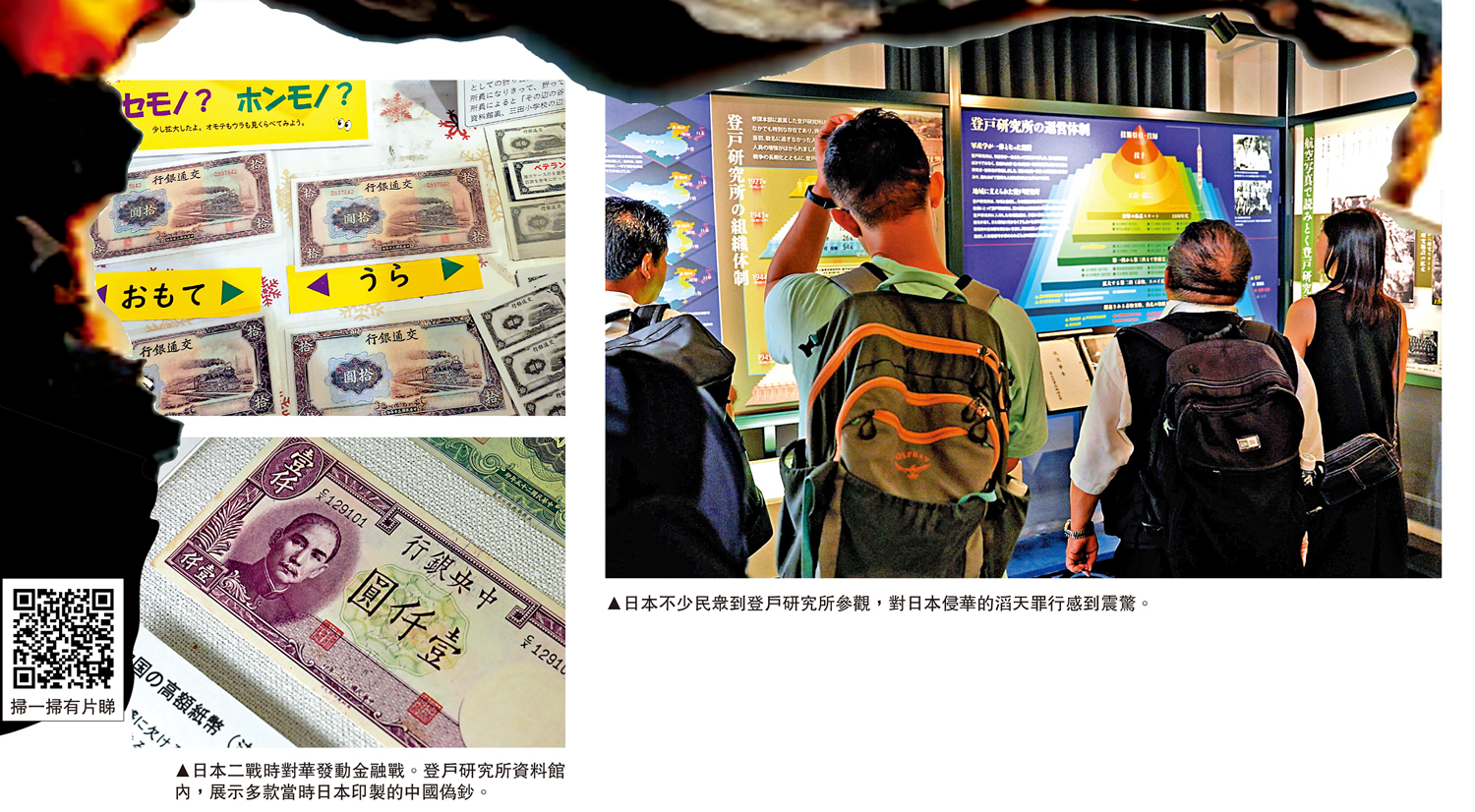 大公報記者直擊位於東京、二戰時為日本研發偽鈔技術的「登戶研究所」。資料顯示,該研究所偽造價值約45億元日圓的中國偽鈔並成功流入市面,日軍曾佔據香港的印刷廠製造偽鈔,同時在金融上摧毀中國。