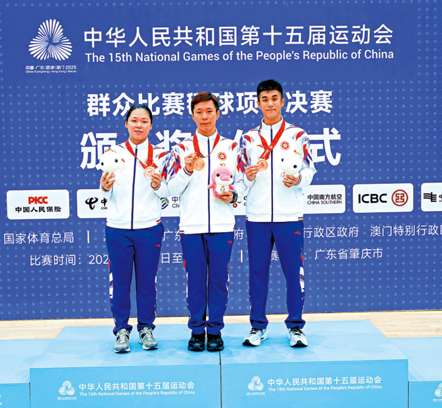 【大公報訊】記者梁潤森報道:第十五屆全國運動會群眾賽事活動毽球項目於本月15日起在廣東肇慶率先展開。來自全國共24支代表隊、286名運動員齊聚一堂,角逐最高榮譽。中國香港毽球隊傳來捷報,於混合雙人賽事中取得歷史性突破!隊員柯鈞鎬與閻諾聯手出擊,連番過關斬將後,在銅牌戰中以直落兩局擊敗實力強勁的江蘇省代表隊,成功奪得銅牌,更是香港毽球隊史上於全運會獲得的第一枚獎牌。