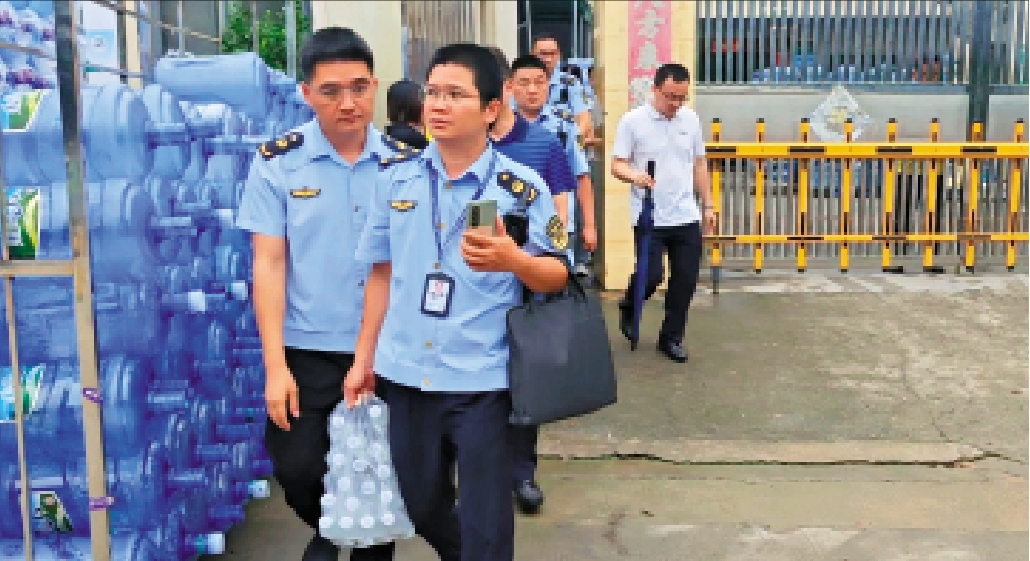 政府採購樽裝水遭詐騙案,涉案的鑫鼎鑫公司運送到香港的樽裝水疑來自東莞樟木頭的一間水廠,事件引起東莞市場監管部門的高度重視。東莞市和樟木頭鎮的執法部門已對水廠展開聯合執法調查。執法人員昨日將一批樽裝水用車載走,作進一步化驗。