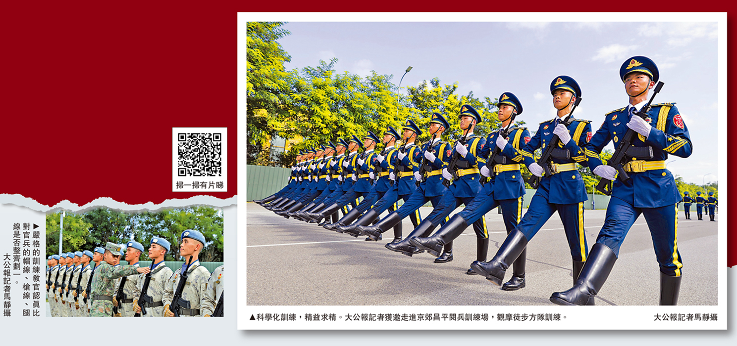 在紀念中國人民抗日戰爭暨世界反法西斯戰爭勝利80周年九三盛大閱兵前夕,大公報記者獲邀走進位於北京郊區昌平閱兵訓練場,觀摩徒步方隊訓練、觀看聯合軍樂團演奏訓練。受閱官兵向記者透露,今年閱兵集中強訓時間並不是很長,得益於全軍大抓實戰化練兵,大家平時訓練基礎比較扎實,到訓練場之後主要進行精細化、科學化強化訓練。同時,通過科學組訓,合理安排訓練時間和內容,創新了訓練方法,一些AI智能化手段助力閱兵訓練短時又高效。\大公報記者 馬靜、李暢北京報道