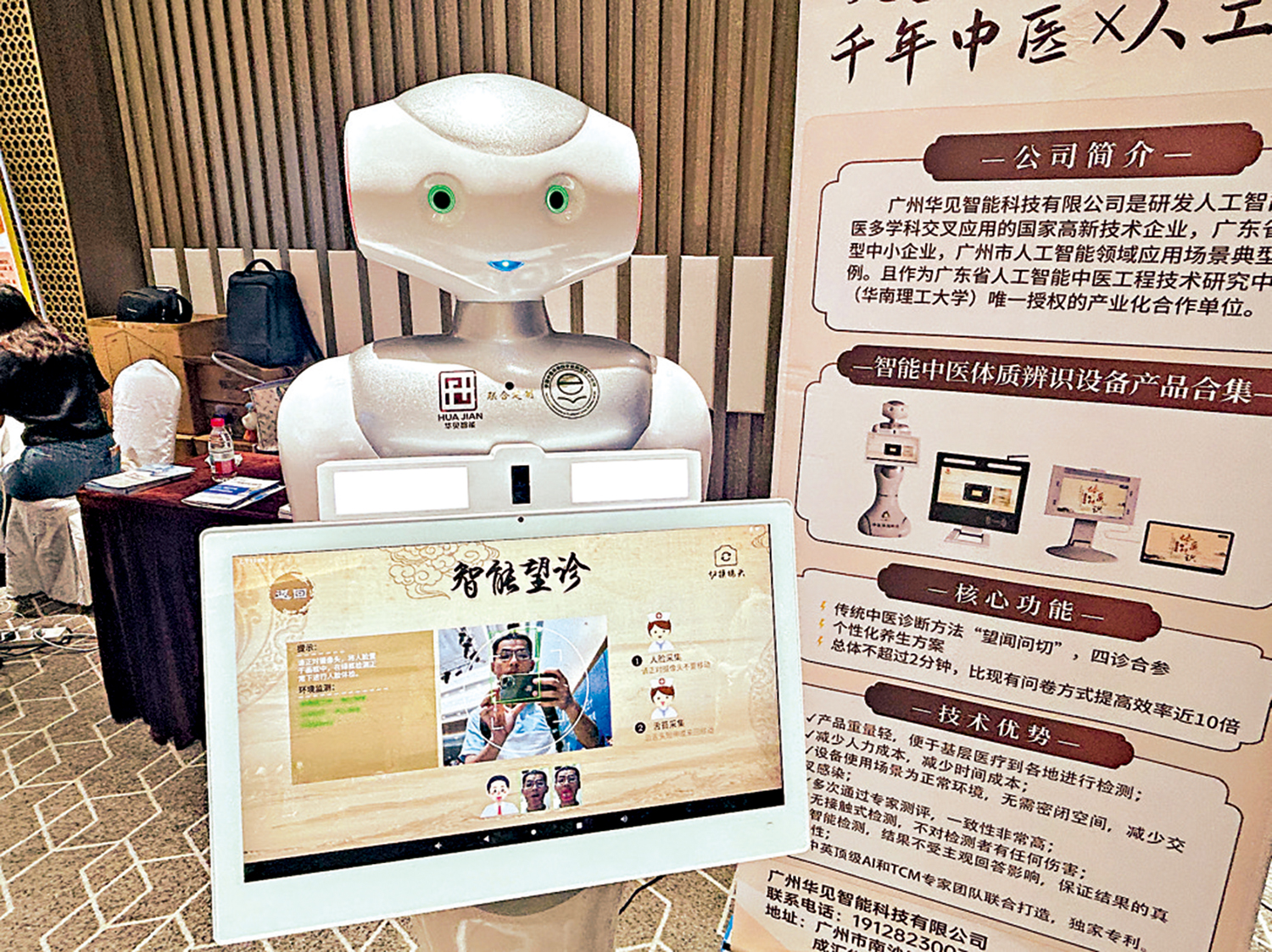 •中醫體質辨識機器人:通過手臂脈搏自動檢測,AI視覺舌苔檢測,結合設備顯示頁面的問卷調查(5道題),能夠在兩分鐘內生成體質類型、患病傾向,並給出飲食方法及穴位保健方法。可用於場館、媒體中心、酒店等賽會主要場景,服務運動員、觀眾等。