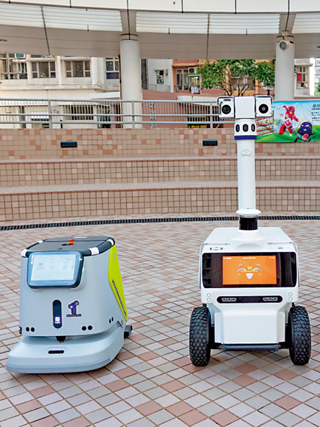 巡邏機器人「小保」可以一邊移動一邊定點拍攝,讓管理人員在屏幕另一端看到關鍵位置,例如回收桶等的實時情況;「小保」還可以邊走邊發出廣播,例如看到有人在屋邨踩單車提醒勸阻,同樣的操作還可應用在防止在屋邨聚賭、吸煙或高空擲物等。 至於清潔機器人「小清」,可以幫忙負責掃地,讓清潔工人可以專注抹窗,減輕清潔工人的工作負擔。