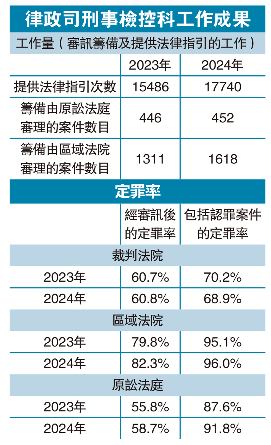律政司刑事檢控科工作成果