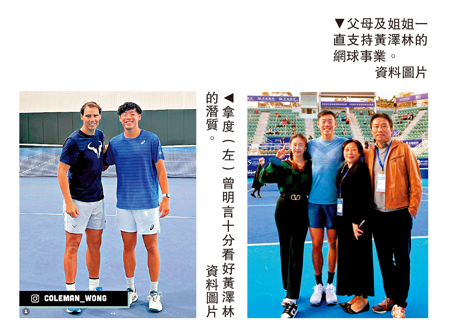 分別身為校長和老師的父母,成為黃澤林發展網球事業的最強後盾,早年赴美國網球學院深造的費用,便已經需要接近百萬港元,還有其他比賽的旅費等,但也令熱愛網球的他更珍惜得來不易的一切。