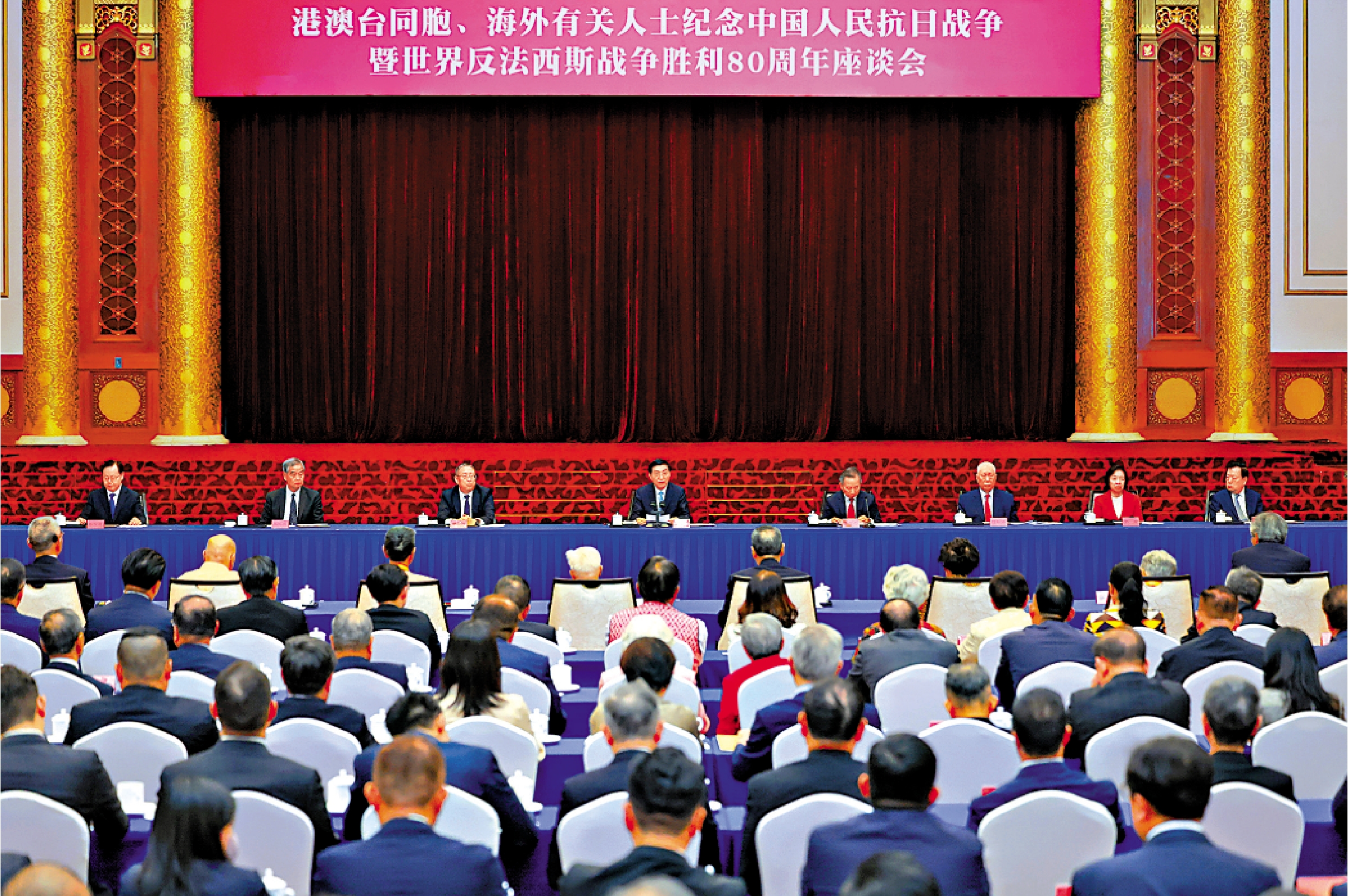【大公報訊】據新華社報道:9月2日,港澳台同胞、海外有關人士紀念中國人民抗日戰爭暨世界反法西斯戰爭勝利80周年座談會在京舉行。中共中央政治局常委、全國政協主席王滬寧出席並講話。