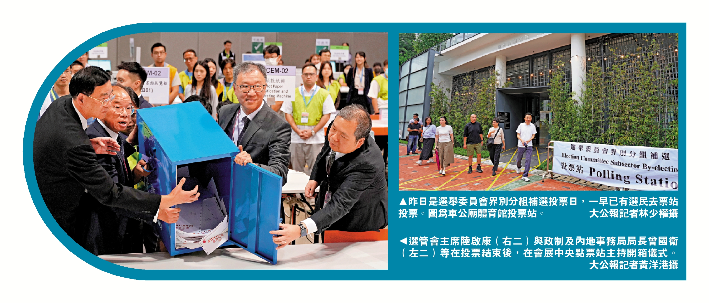 行政長官李家超向當選委員祝賀。他表示,選委會具廣泛代表性和符合均衡參與原則,在完善選舉制度、落實「愛國者治港」原則下肩負重要功能。選管會主席陸啟康表示,今次選舉投票和點票過程十分暢順,各項安排都能體現到公開、誠實和公平的原則。\大公報記者 義昊