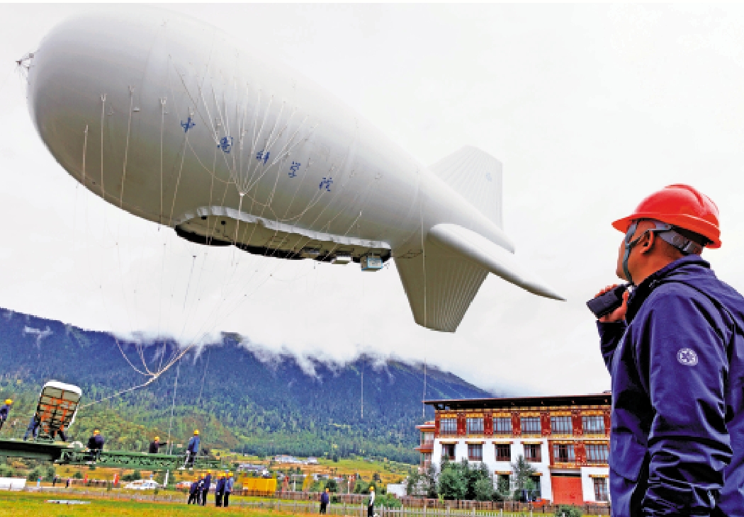 近日,第二次青藏高原綜合科學考察研究(第二次青藏科考)在西藏林芝市巴宜區魯朗鎮,成功開展「極目一號」浮空艇大氣觀測試驗。該浮空艇搭載3大類共16型、總重量約200公斤的科學載荷,成功升空至海拔5500米高度,通過多載荷協同觀測,實現從單點採樣到立體監測的技術跨越。「極目一號」浮空艇觀測載荷由中國科學院青藏高原研究所牽頭自主研發,浮空艇由中國科學院空天信息創新研究院(空天院)牽頭自主研發。浮空艇具備大載重能力、超長續航時長、強抗干擾性能及對複雜環境的高適應性等優勢,可在惡劣工況下穩定執行觀測任務。從今年8月份開始到9月19日,試驗累計完成了30次升空飛行驗證。圖為9月18日,「極目一號」浮空艇在升空。\新華社