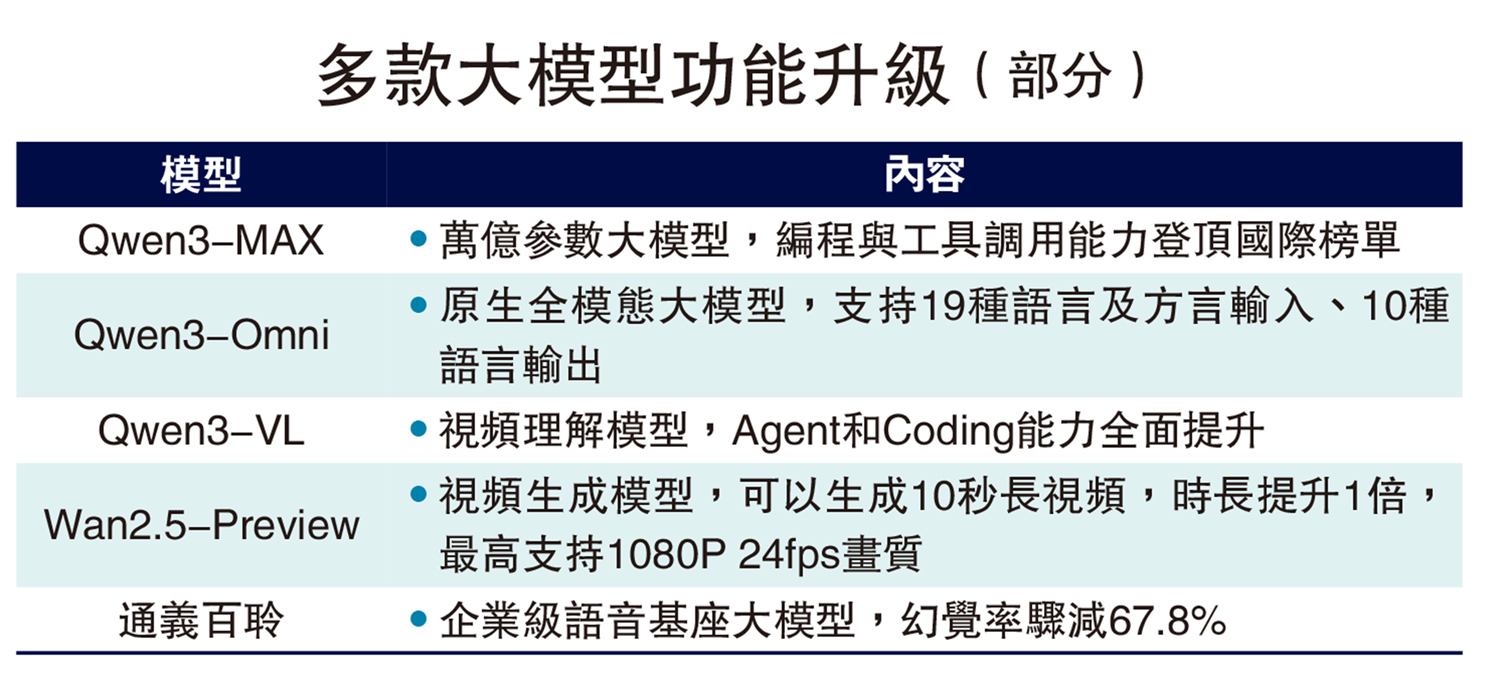 阿里巴巴(09988)旗下阿里雲在雲棲大會上發布AI服務技術體系及多項重磅技術更新,涵蓋新一代通義大模型「Qwen3-Max」等10多項大模型,包括Agent開發平台、AI基礎設施等關鍵領域。