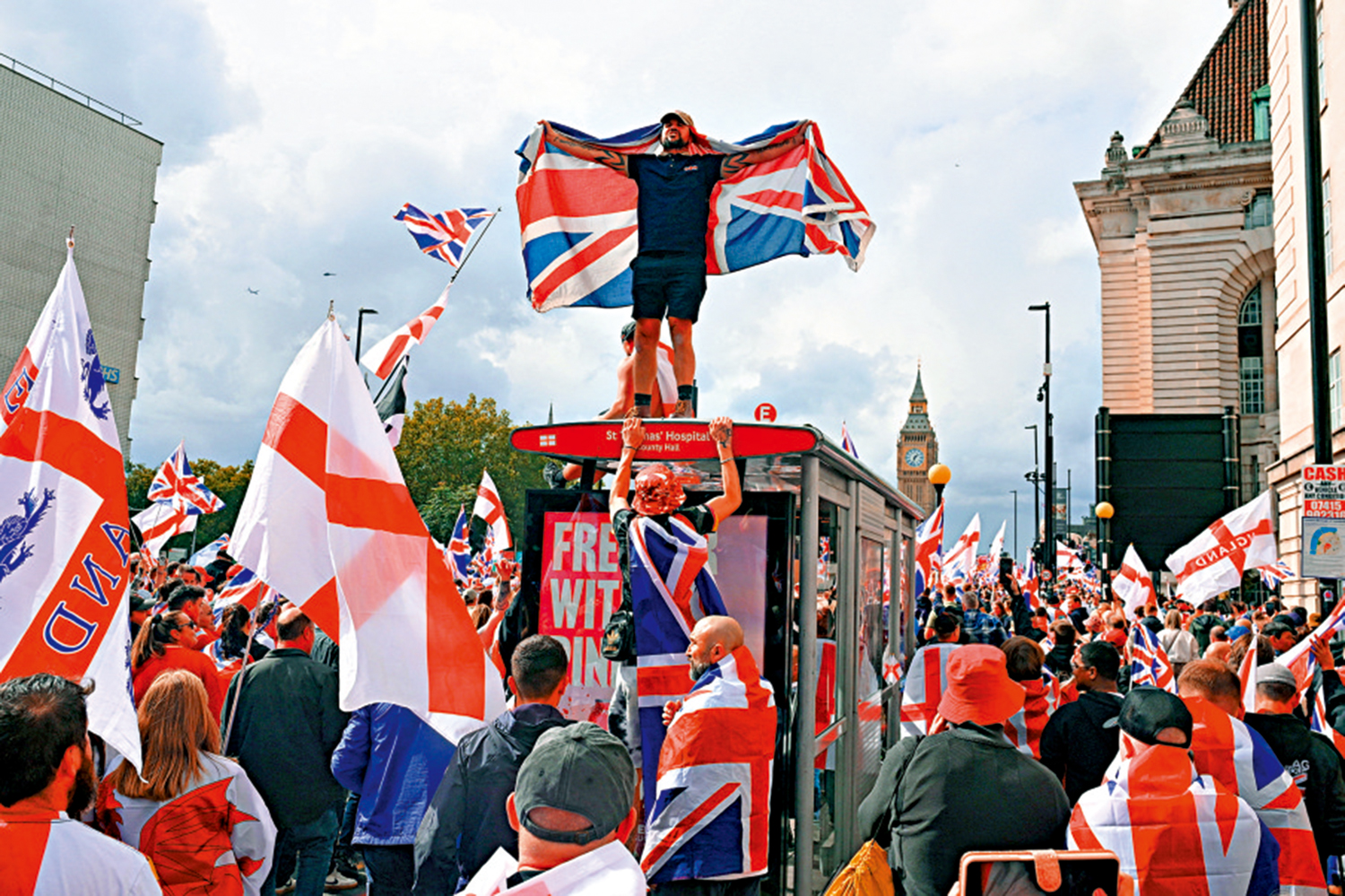 【大公報訊】綜合BBC、《華爾街日報》報道:移民問題已成為英國政治核心議題,今年以來全英多地已發生多輪反移民抗議活動。9月13日,由英國極右翼、反移民人士湯米·羅賓遜組織的「團結王國」遊行在倫敦登場,逾15萬人參與,是此次反移民示威中最大規模的一次抗議。示威者與警方發生衝突,造成26名警員受傷,至少25人被捕。