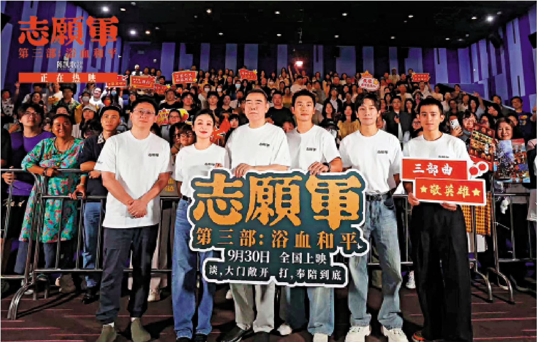 連續三年相約國慶檔,《志願軍》系列迎來終章。9月30日,由中影集團領銜出品、陳凱歌執導的電影《志願軍:浴血和平》在內地上映,不同於前兩部,第三部解鎖抗美援朝戰爭「邊打邊談」的全新戰局,讓觀眾看到更多維度的博弈與較量。中國電影評論學會會長、中國電影家協會原秘書長饒曙光對《大公報》表示,這部影片實現從單一英雄到群體英雄的敘事躍升,使志願軍的精神譜系在多重人物、多種命運交織中更加立體,而影片工業級的製作水準,更是高度還原了歷史。