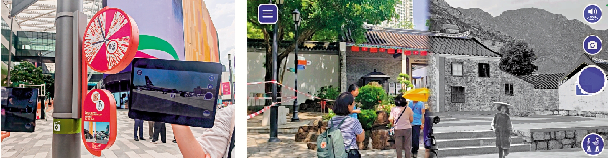 記者昨日跟隨項目導賞團,實地走訪這些指定地點,下載使用城市景昔程式,掃描現場新設的AR時鐘後,手機屏幕上,對半呈現實時現實景象及歷史景象的古今對比效果,可用手指調節屏幕上畫面古、今所佔的比例,在遊覽時還可點擊感興趣的歷史古蹟查看簡介。