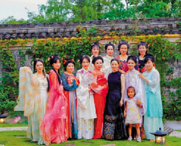庭院中,不少參與者身穿漢服,在涼亭中或是花枝旁拍照打卡。「這是我第一次體驗漢服,化妝師為我化了妝、做了髮型,還搭配了各種配飾,這裏古色古香的氛圍剛好很適合拍照,感覺很開心!」來自台灣的林女士說道,還舉起手機展示自己在庭院裏拍的照片。