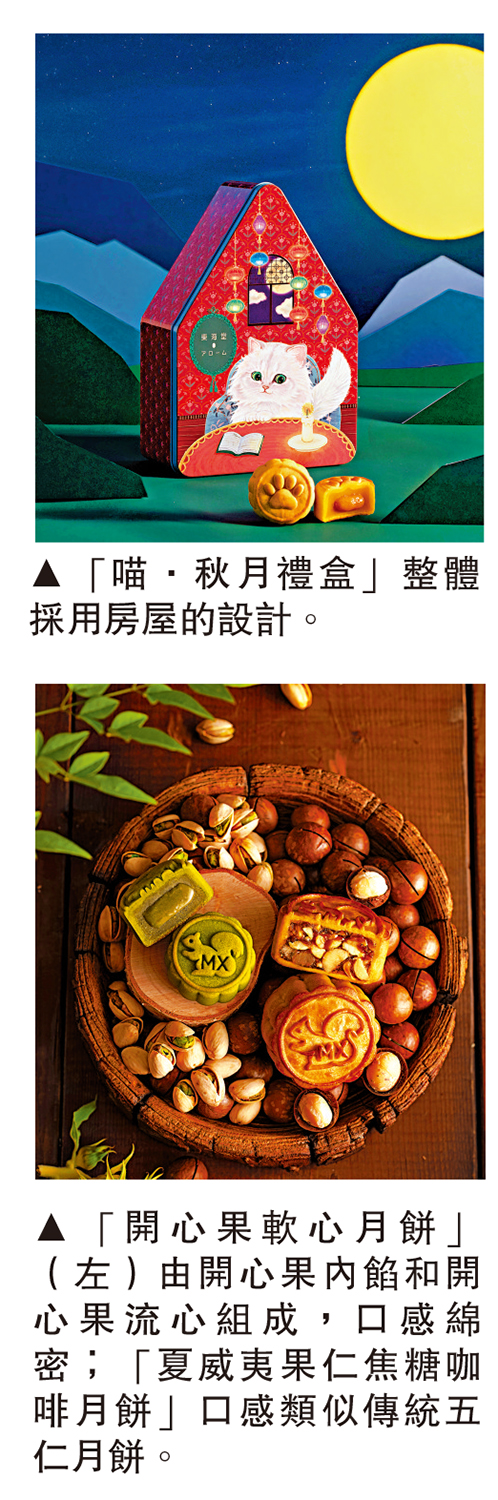 在流心月餅和蛋黃月餅霸佔市場多年後,傳統五仁月餅近兩年悄悄在市場復甦,今年市場上可見的「夏威夷果仁焦糖咖啡月餅」,口感就類似傳統五仁月餅,以焦糖和果仁餡料烘焙而成,略帶咖啡香氣;另外,響應先前頗受好評的「低糖蛋黃蓮蓉月餅」,不少品牌今年都推出低糖系列,包括低糖五仁月餅、低糖奶黃月餅、低糖高纖月餅等,配料以麥芽糖醇代替白砂糖,減低對血糖的負擔,帶來新的健康選擇。 大公報記者徐小惠