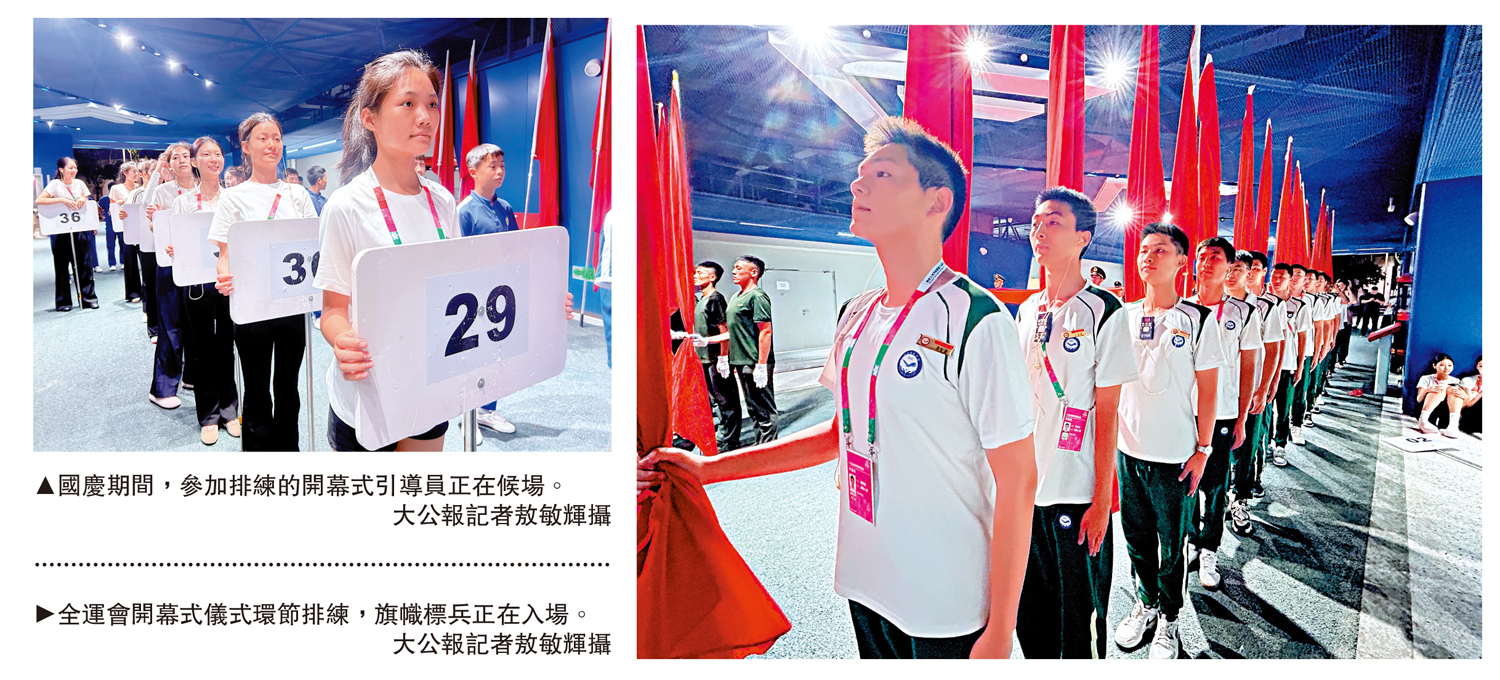 「10月1日凌晨完成第二次聯排,未來一周還有兩場聯排,至月中,製作環節的施工項目要全部完工,我們在『雙節』假期反而更忙碌。」1日晚,全運會開幕式製作總監魏來面向廣東奧體中心中央體育場告訴記者。當市民迎來國慶中秋8天長假時,開幕式主創團隊、演職人員及後勤保障人員卻到了籌備衝刺階段,反覆打磨細節、優化流程,全力打造一場精彩的體育文化盛宴。\大公報記者 敖敏輝廣州報道