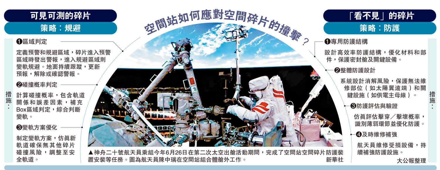 【大公報訊】據人民網報道:自1957年發射第一顆人造地球衛星以來,空間碎片呈快速增長趨勢。數據顯示,截至2024年,地球軌道上可被持續追蹤的較大空間碎片已超過4.4萬個;尺寸在1厘米以上、對航天器構成潛在威脅的空間碎片數量估計超過100萬個。這些碎片普遍以接近第一宇宙速度(約7.9公里/秒)運行,其動能巨大,撞擊破壞力不可低估。因此,如何加強對航天器的防護,已成為全球航天活動的重要關注點和技術攻堅方向。