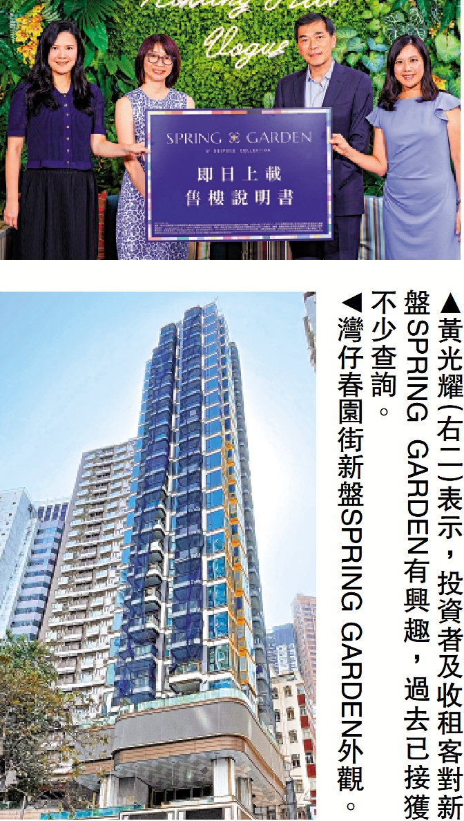 【大公報訊】港股持續向好,樓市亦越趨平穩,多家發展商已積極部署在今年最後一季賣樓,最新是會德豐地產剛上載其灣仔春園街單幢盤SPRING GARDEN的樓書資料,共提供88個1至2房單位,短期內會公布售價。而由恒地(00012)發展灣仔Woodis,及信置(00083)等發展的元朗柏瓏Ⅲ,亦最快於本周開價。
