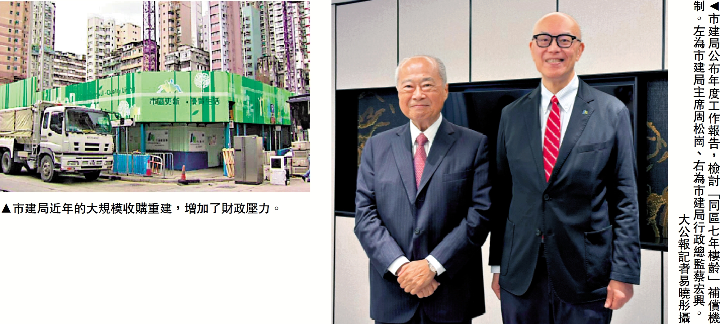 市建局行政總監蔡宏興表示,政府近日將市建局發債上限由250億元提升至350億元,現時限額仍未用盡,不排除在市場適合及能力許可下再融資,但強調長遠不可以「借貸度日」。現時「同區7年樓齡」收購政策20多年沒有改變,但樓宇老化程度及經濟環境已有大改變。市況不穩及經濟不明朗等因素下,繼續以「同區7年樓齡」機制,會造成「收購越多、蝕得越多」。