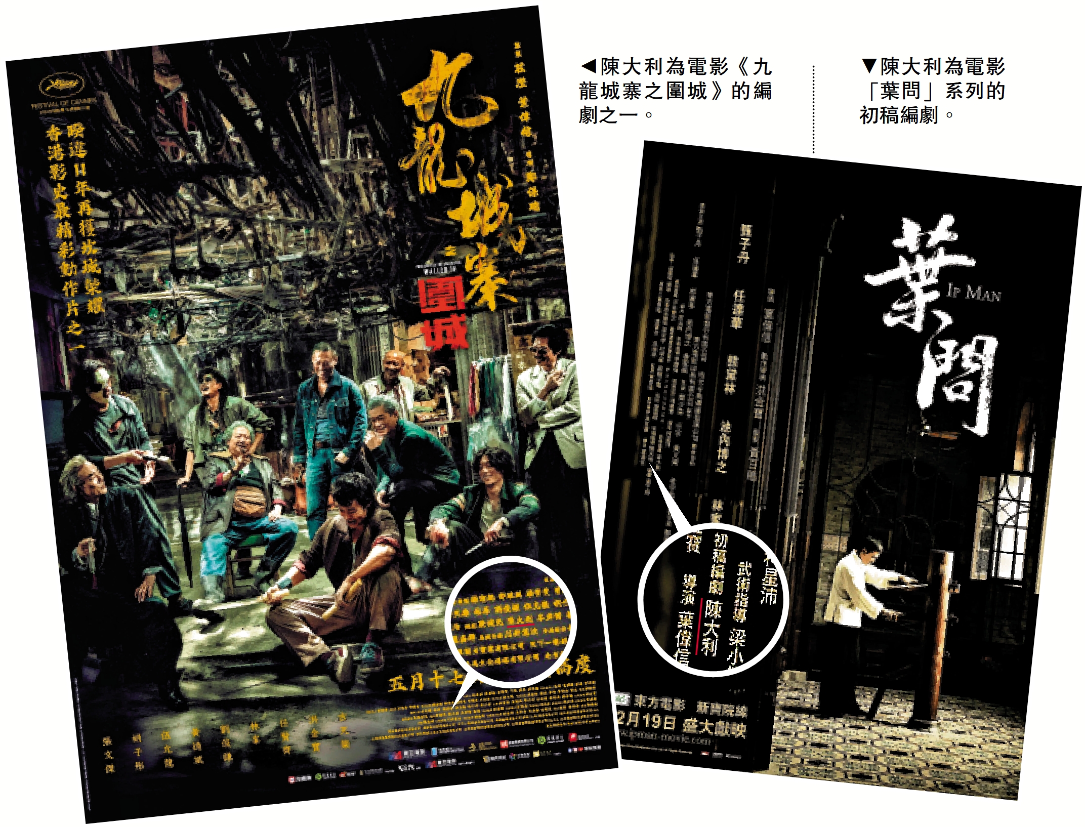 作為「80後」電影人,陳大利在行業中角色眾多,導演、編劇、演員,但伴隨其職業道路最長的,無疑還是編劇。在香港和內地兩地間執筆二十餘年,先後參與「葉問」系列、《九龍城寨之圍城》、《鏢人:風起大漠》等電影的編劇工作,從電影系畢業的無名之輩到如今站穩腳跟,陳大利總以幸運形容自己一路走來的經歷。日前,他接受大公報記者專訪,以親身經歷分享入行20年來在電影行業生存的真實體會。\大公報記者 徐小惠