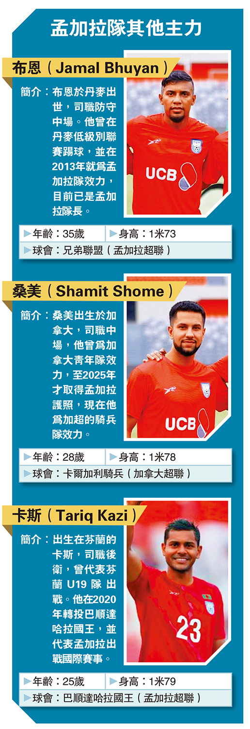 簡介:桑美出生於加拿大,司職中場,他曾為加拿大青年隊效力,至2025年才取 得孟加拉護照,現在他為加超的騎兵隊效力。