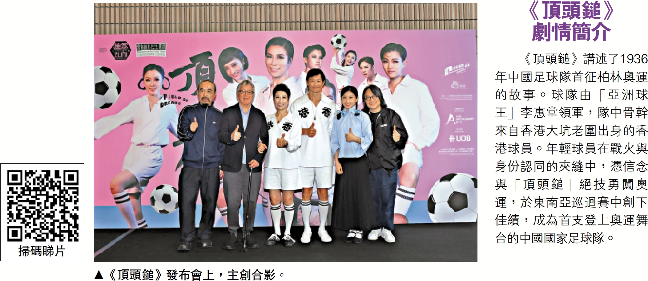 在選角上,胡恩威表示,「李惠堂很出名,他是當時香港足球最高峰的時候的一個主要推手,找黃德斌來飾演是因為他有一種氣勢。衛駿輝飾演的鄭開滿是一個街市裏的草根人物,剛剛開始學習踢足球,是一個有很多力量的人。」