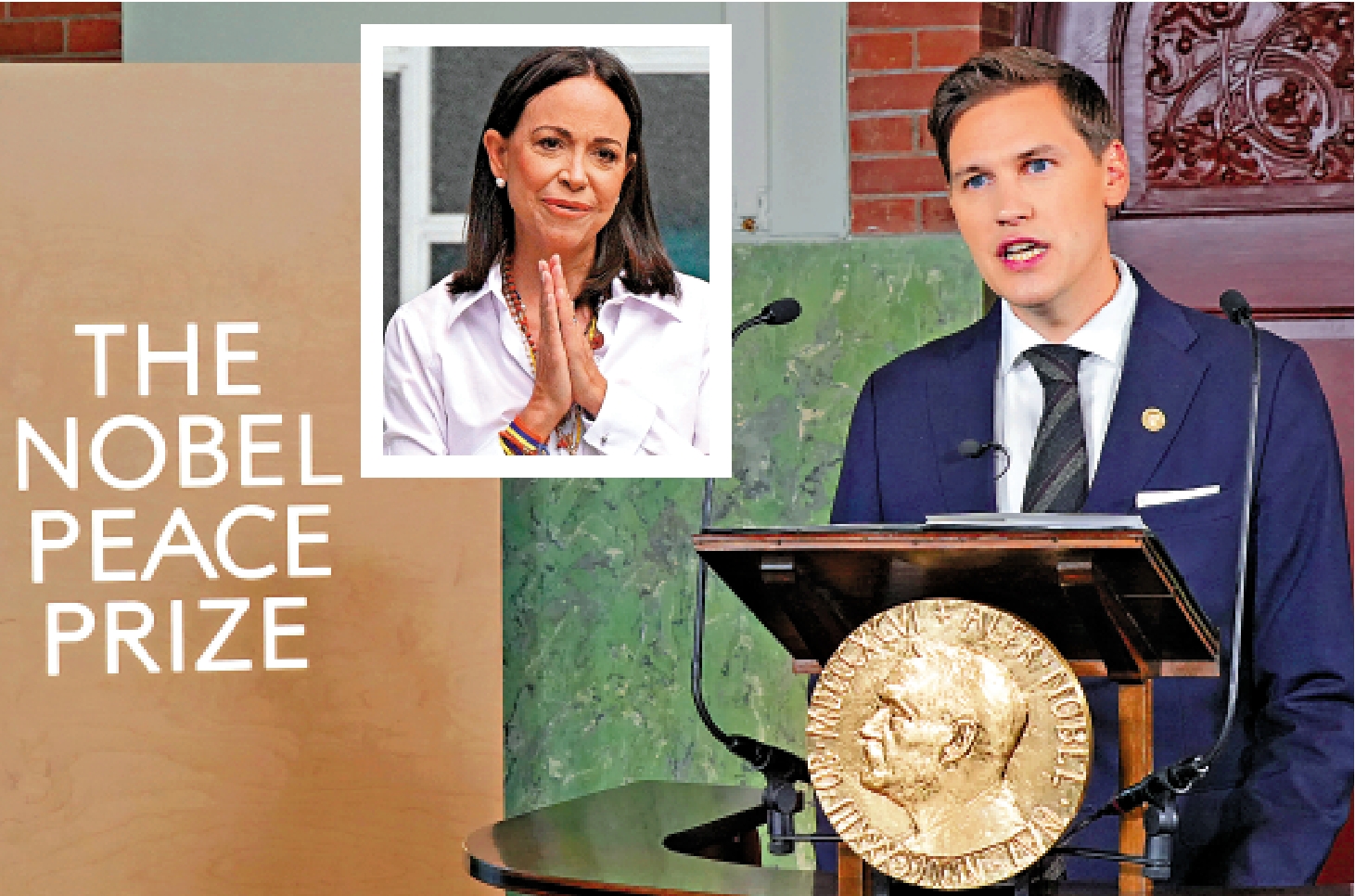 【大公報訊】挪威諾貝爾委員會10日宣布將2025年諾貝爾和平獎授予馬查多,以表彰她「為委內瑞拉人民爭取民主權利的不懈努力」。馬查多得知自己獲獎時表示難以置信。馬查多於2002年從政,她在2023年反對派總統初選中獲勝,但後來被禁止擔任公職,由烏魯蒂亞接替她參加2024年委內瑞拉大選,最終輸給現任總統馬杜羅。馬查多曾在今年1月馬杜羅就職前的抗議活動中露面並被逮捕,不久後獲釋。