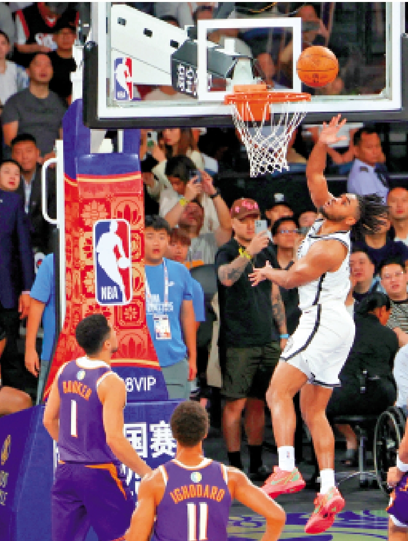 【大公報訊】記者朱家立報道:NBA中國賽10日晚在澳門威尼斯人綜藝館舉行首場賽事,由西岸球隊太陽對陣東岸的籃網,最終前者在加時賽後以132:127取勝,其中與籃網簽下Exhibit-10合同的中國球員曾凡博獲得10分06秒的上陣時間,引起全場球迷歡呼。
