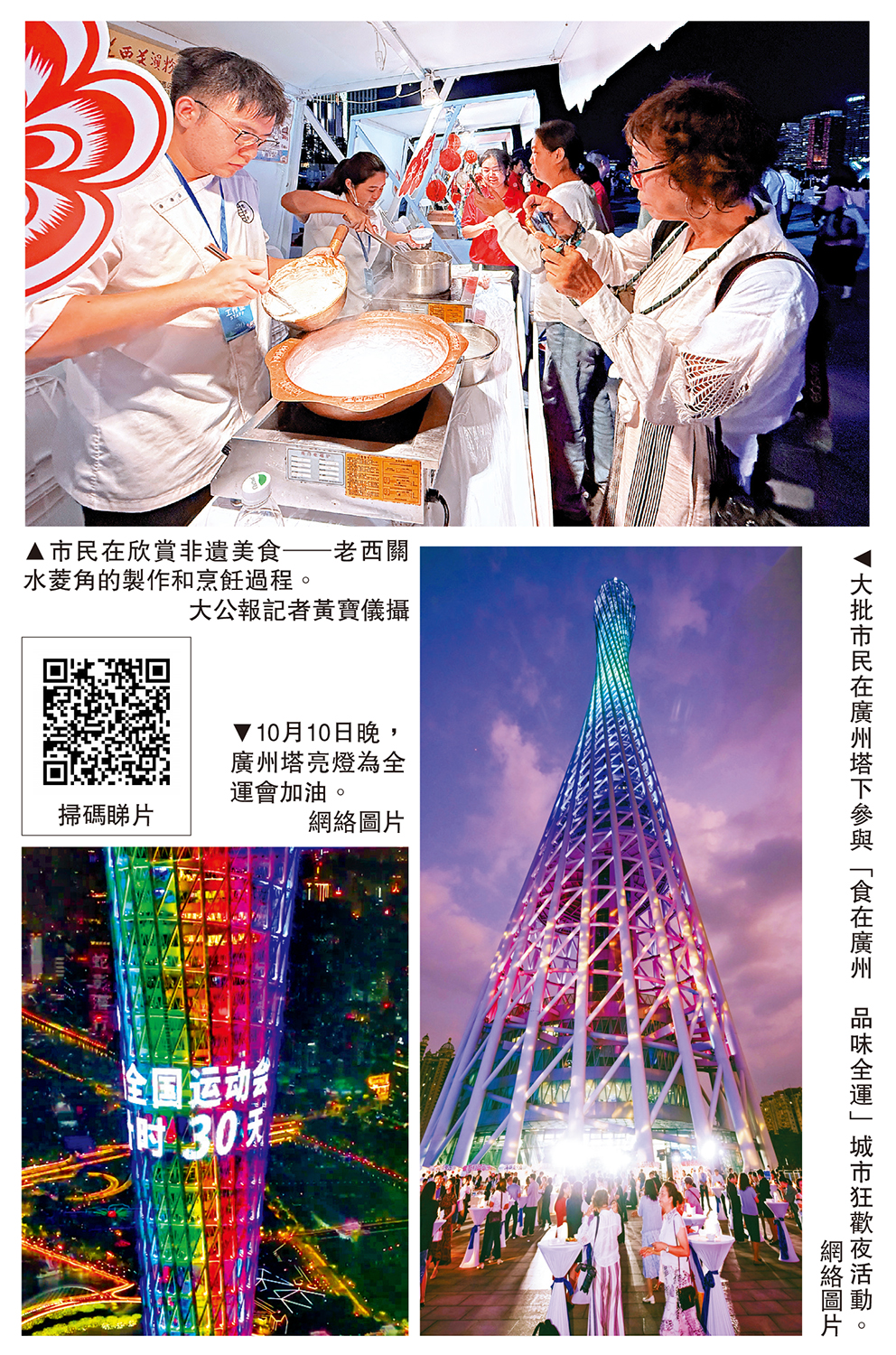 10日晚,在第15屆全運會倒數30天之際,一場融合「全運互動+非遺美食+文化體驗」的「食在廣州 品味全運」城市狂歡夜活動於廣州塔舉行,「尋找省點計劃」也在活動現場正式啟動,奧運冠軍李小鵬、張潔雯、張雁全以及多名美食家、烹飪大師出任「省點推薦官」,共同為廣東點心「喝彩」,旨在為來賓提供一份地道點心的品味指南,並系統梳理與推廣其獨特魅力。\大公報記者 黃寶儀廣州報道