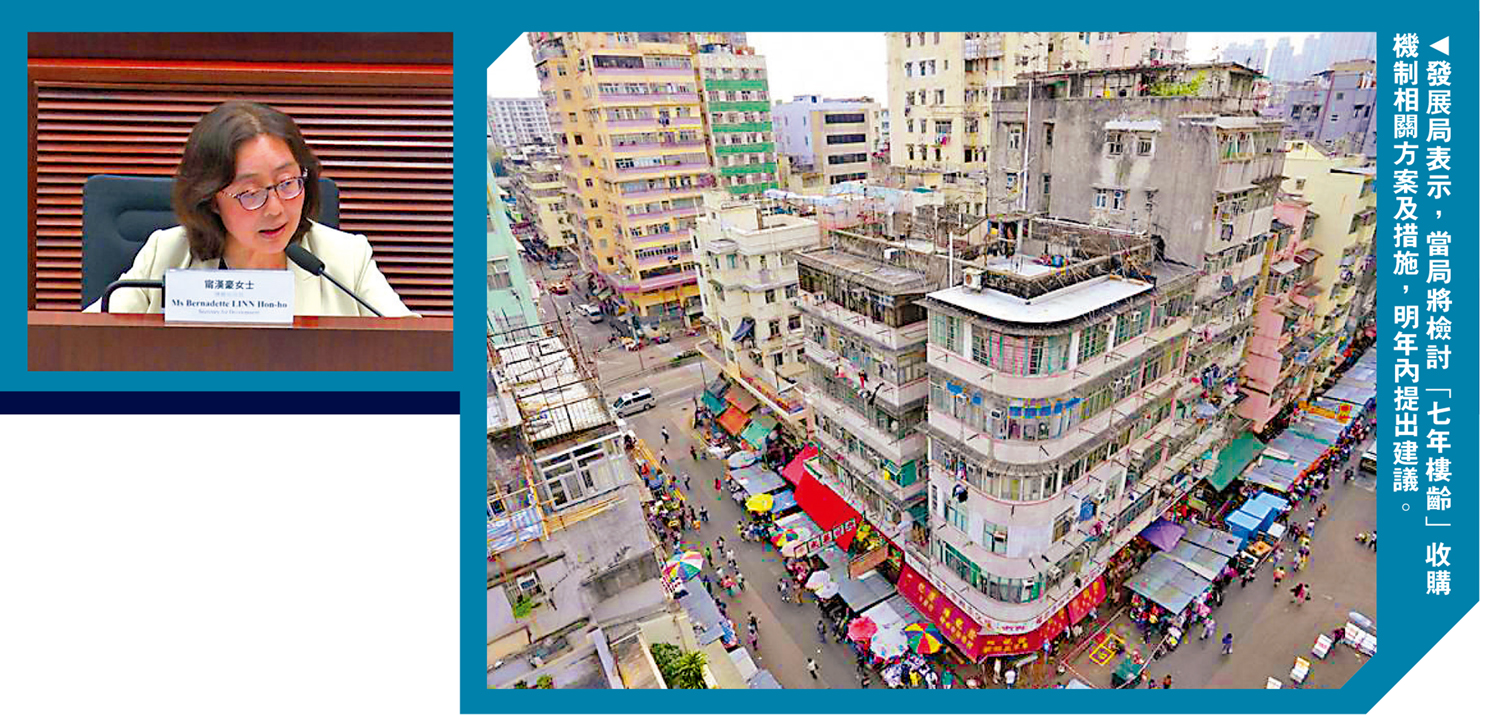 發展局局長甯漢豪坦言,當年推出「七年樓齡」收購機制,是為加快啟動市區更新,但過去多年來有關做法開始帶來「高買低賣」問題,亦對私人市場出價收購造成阻力。當局將檢討相關方案及措施,明年內提出建議。\大公報記者 龔學鳴