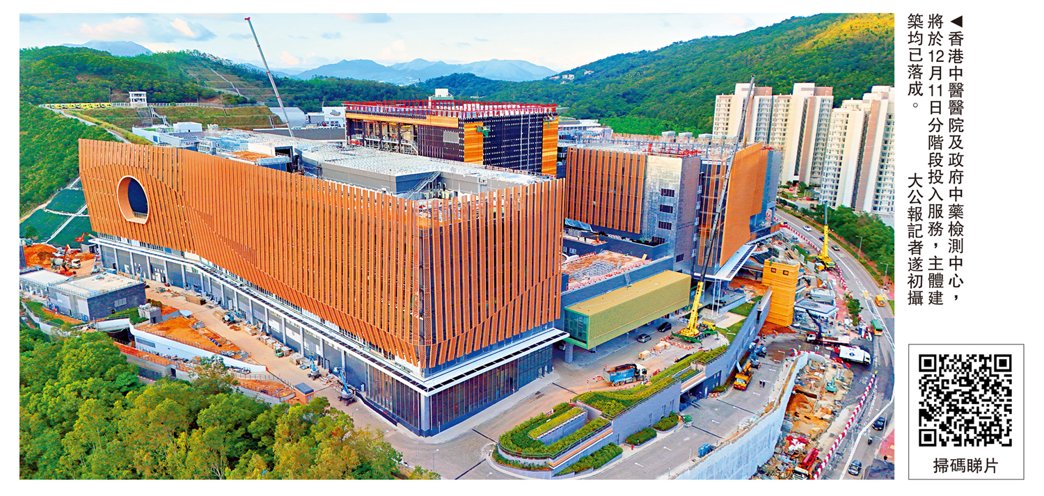 香港中醫醫院及政府中藥檢測中心將於12月11日正式分階段投入服務。醫務衞生局及營運機構今日將召開記者會,公布香港中醫醫院的服務安排。行政長官李家超昨日表示,香港中醫醫院作為本地中醫服務和中醫藥的旗艦機構,會充分利用香港的醫療體制、規管制度、標準制訂、臨床研究及貿易、高等教育,以至國際聯繫等方面優勢,發揮重要作用。