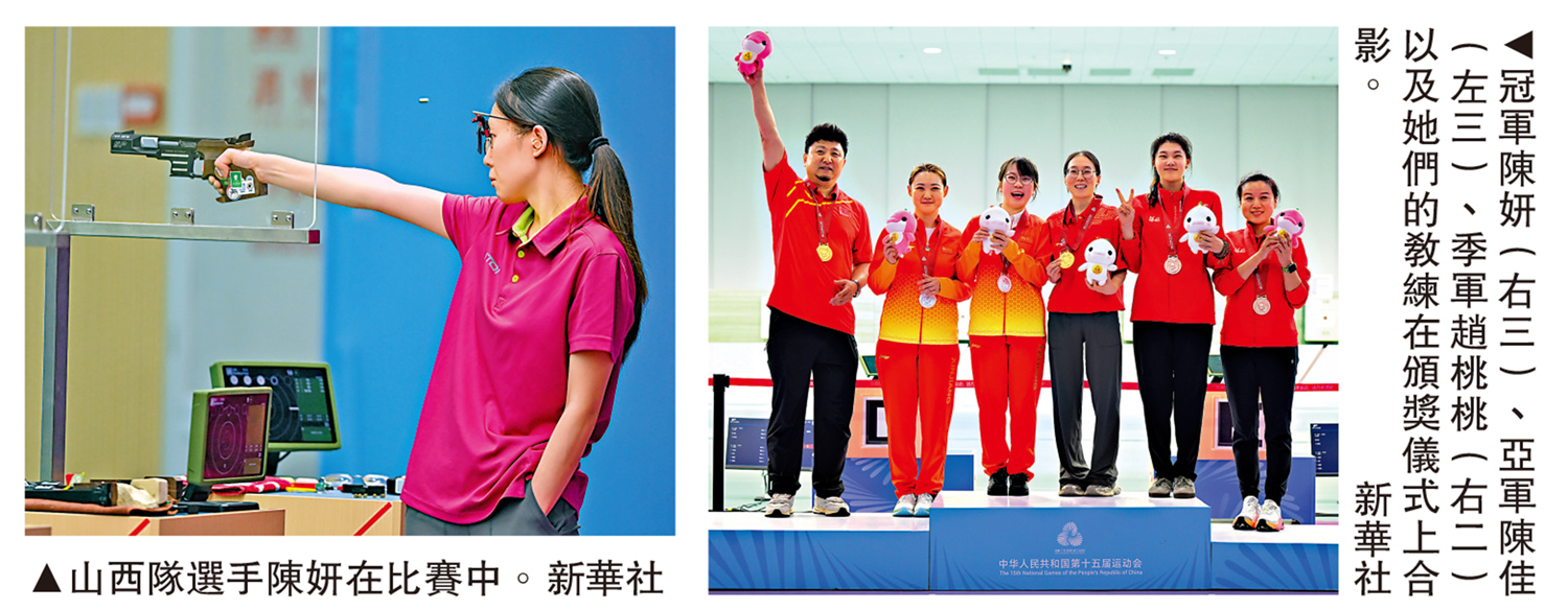 【大公報訊】據中新社報道:15日,全運會女子25米手槍決賽上,山西運動員陳妍奪得冠軍,為山西代表團奪得本屆全運會第三枚金牌。