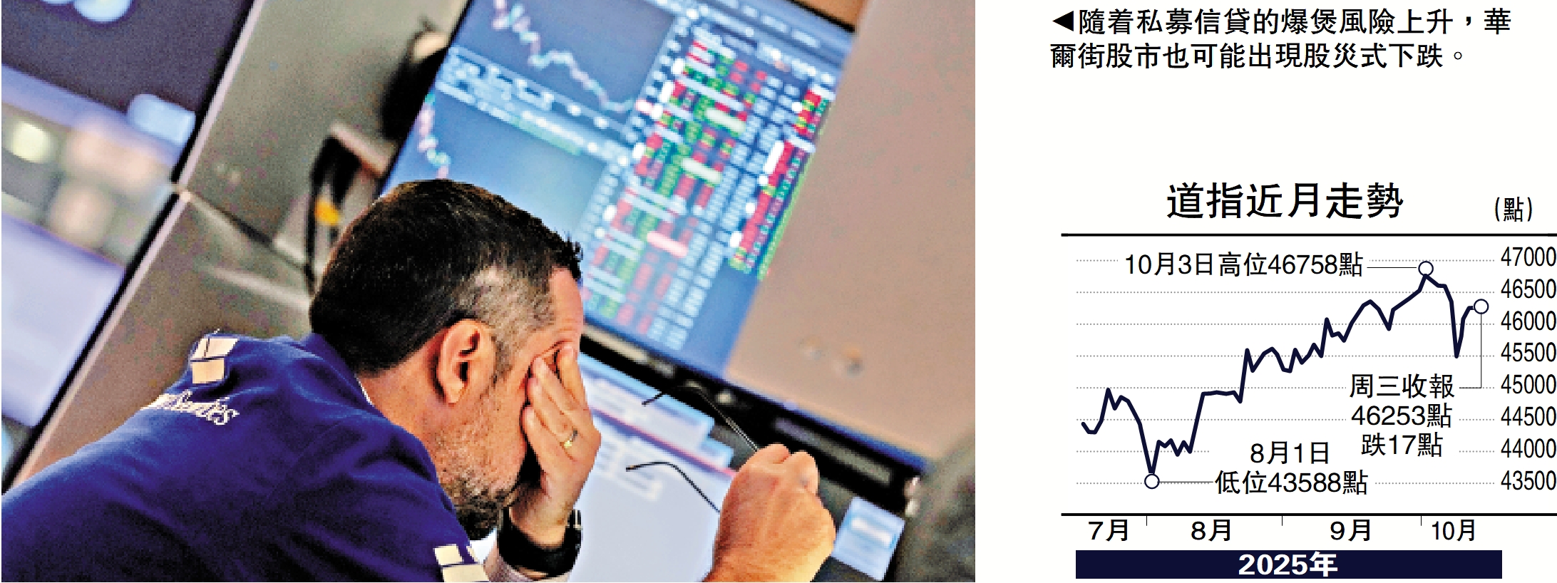 美國威脅對中國加徵100%關稅引發華爾街股市震盪,特朗普急急出言安撫市場緊張情緒,暴露出美國金融潛藏巨大風險,其中規模接近2萬億美元的私募信貸頻現爆煲事件,隨時禍及持有這些表外融資及相關資產的資管、投行、基金及保險公司,類似2007年次按危機恐會歷史重演,繼而爆新的金融風暴。