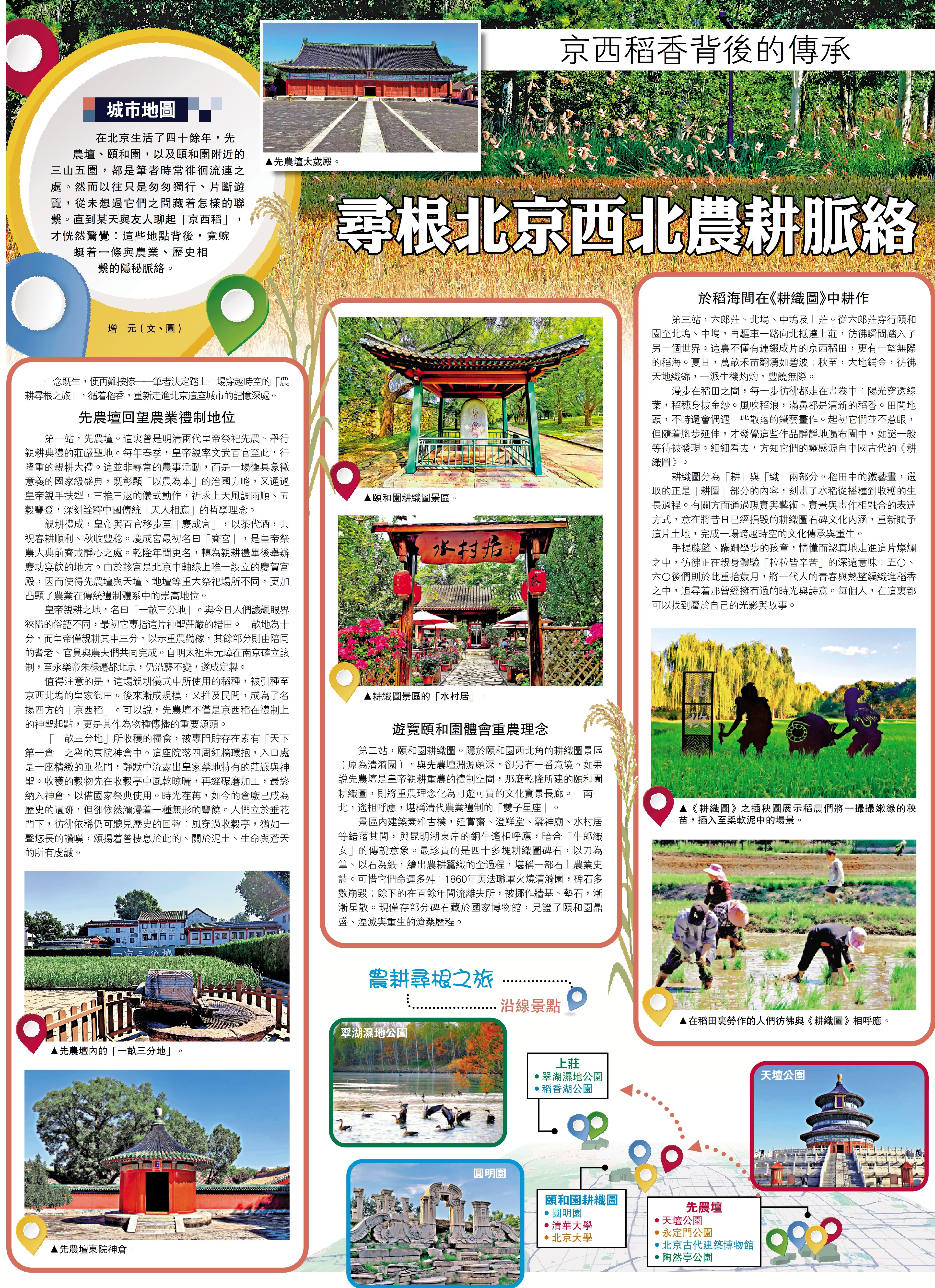 在北京生活了四十餘年,先農壇、頤和園,以及頤和園附近的三山五園,都是筆者時常徘徊流連之處。然而以往只是匆匆獨行、片斷遊覽,從未想過它們之間藏着怎樣的聯繫。直到某天與友人聊起「京西稻」,才恍然驚覺:這些地點背後,竟蜿蜒着一條與農業、歷史相繫的隱秘脈絡。\增 元(文、圖)