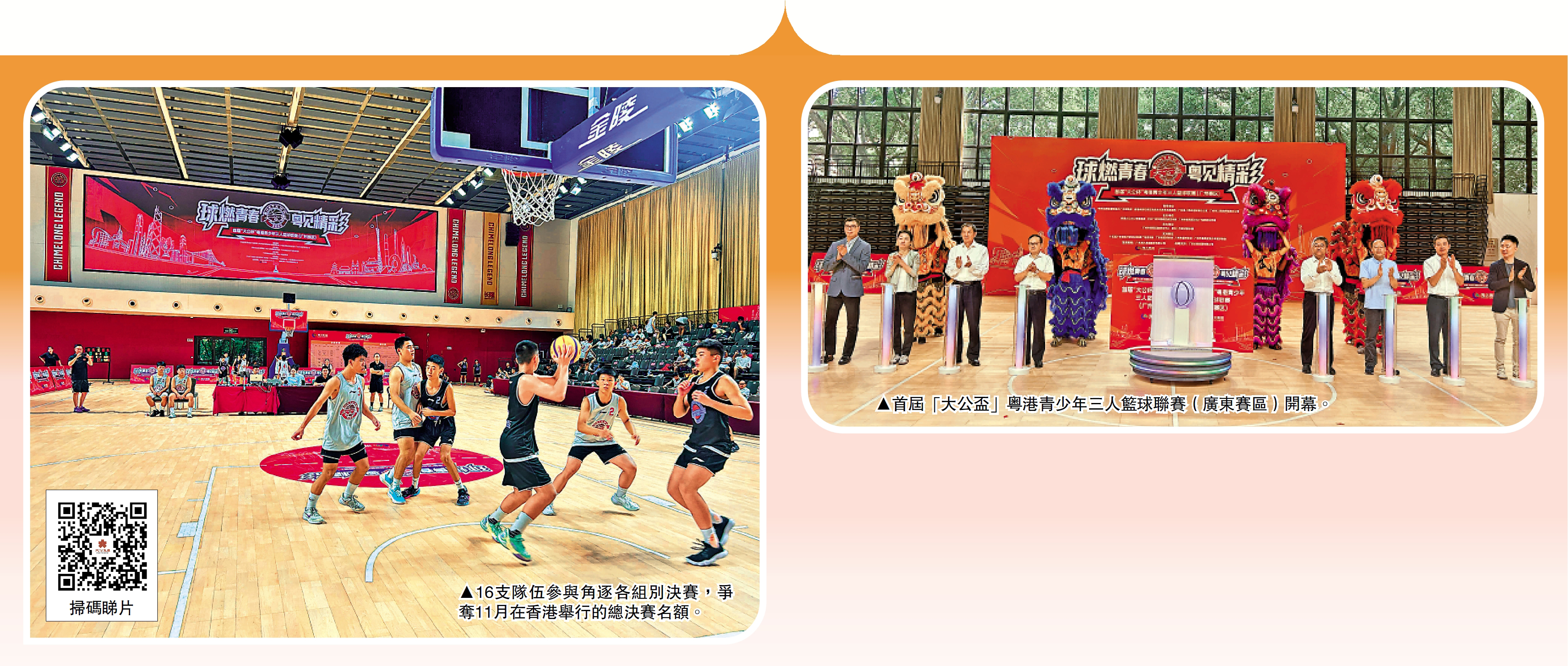 18日,首屆「大公盃」粵港青少年三人籃球聯賽(廣東賽區)開幕式暨廣州賽區決賽在廣州長隆傳奇籃球館舉行,從廣州賽區選拔賽中脫穎而出的16支男、女組別籃球隊,展開激烈角逐,爭奪下月在香港舉行的賽事總決賽入場券。此次大賽以第15屆全運會為契機,以籃球為媒介,為兩地青少年搭設了友誼之橋、交流之窗,標誌着粵港青少年體育交流再添新平台。\大公報記者 敖敏輝、帥誠廣州報道(文、圖)