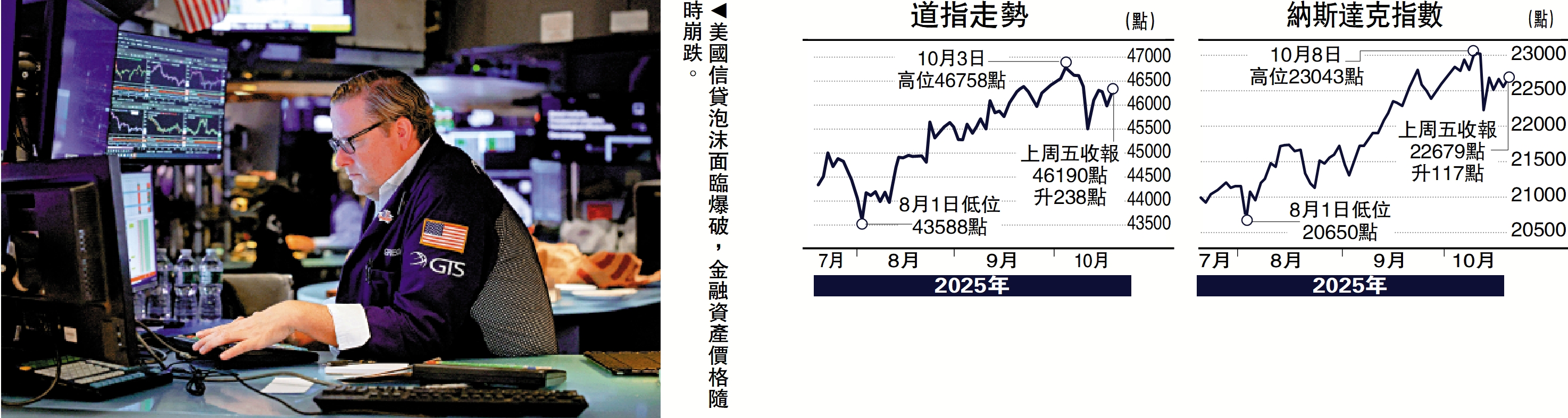 過去十多年美國濫借濫貸,市場擔心泡沫開始爆破,有私募信貸支持的次級車貸商Tricolor及汽車部件供應商First Brands相繼破產,其中First Brands被揭發隱藏複雜債務及表外融資接近120億美元,預期產生高額壞賬,恐禍及美國金融機構,脆弱的地區銀行最高危,隨時釀成銀行風暴。