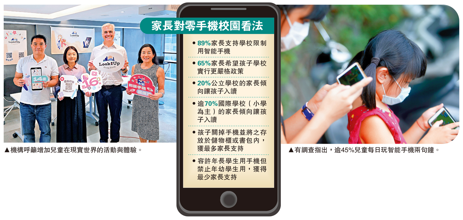 機構倡議兒童推遲接觸手機,包括推行零手機校園、推遲使用智能手機到至少14歲、推遲使用社交媒體到至少16歲,以及增加兒童在現實世界的活動與體驗。\大公報記者 郭如佳
